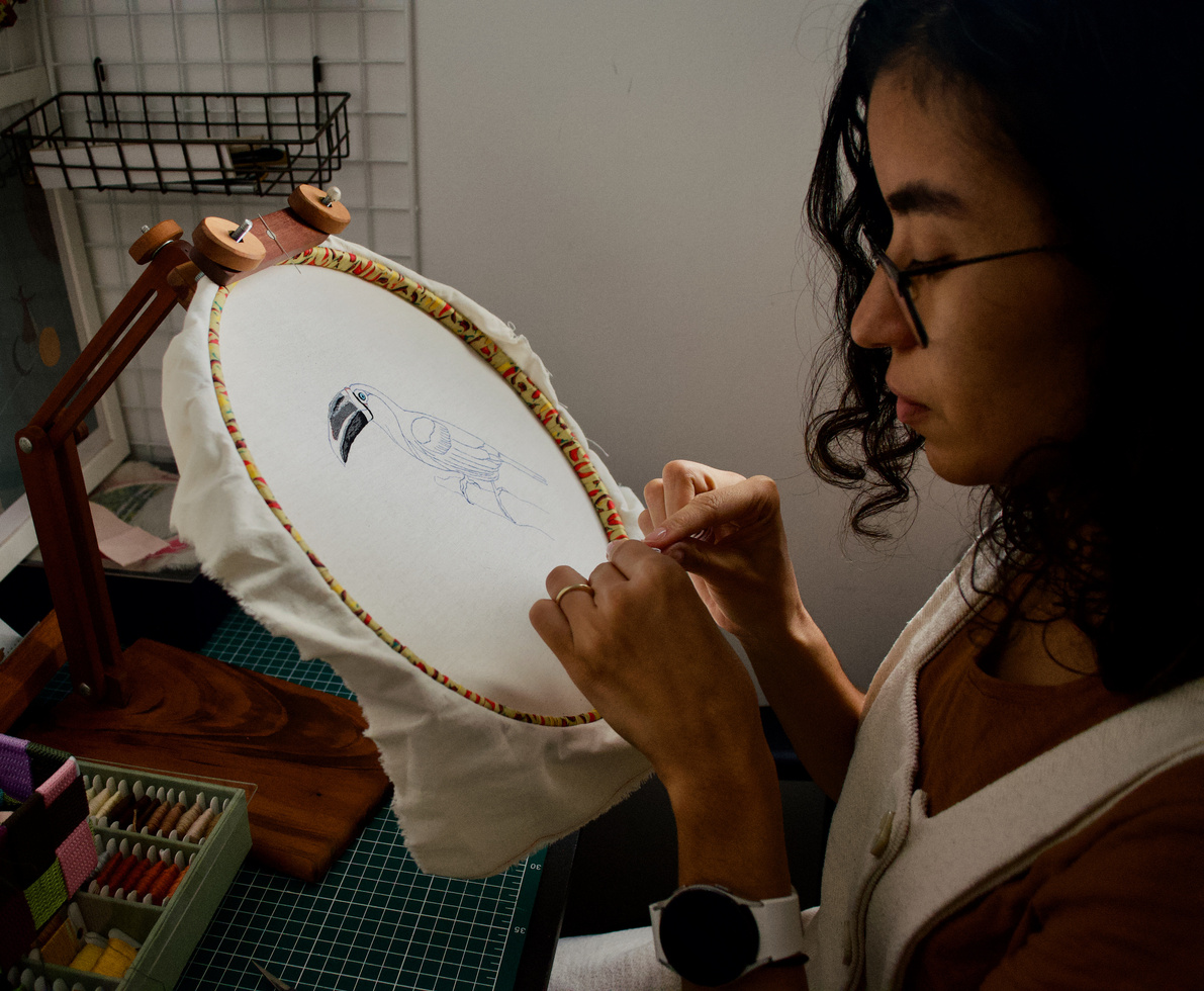 Decidi criar a minha marca Estúdio Gabriela em 2022. Aprendi a bordar e gostar de manualidades com minha mãe, que me levava junto aos cursos que fazia de bordado e pintura. Gosto de bordar principalmente flores e animais, usando técnicas de realizamos e 3D, com muitas cores e uso de elementos diferentes, como miçangas, lantejoulas e fitas. As minhas peças expressam um pouco da minha personalidade e a paixão pelas artes.